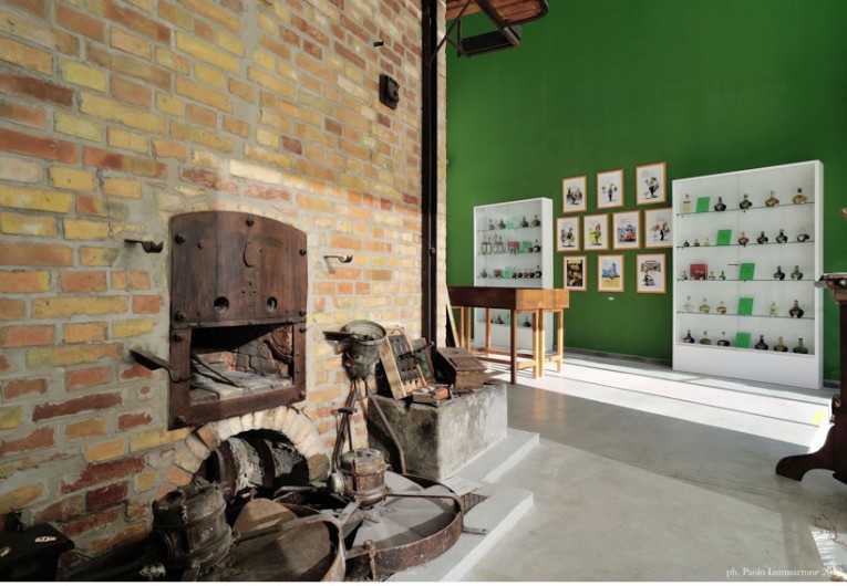 Non può considerarsi una sala, ma un vero e proprio museo situato al piano terra della struttura. In esso sono custodite testimonianze che raccontano dell’ex distilleria: reperti, varie componenti tecnologiche dell’opificio, foto, scritti e l’antico forno caldaia offrono la possibilità di ripercorrere il passato dell’edificio, quando vi si produceva “l’oro di Pescara”. Dal 30 aprile 2011 questo spazio ospita una collezione costituita da 115 bottiglie di grande formato e 95 mignon, importante dono della famiglia D’Alessandro che desiderava collocare l’intera serie di bottiglie nella sua ideale location valorizzando la storia di questo edificio e la sua prestigiosa tradizione produttiva e culturale; bellissimi quanto affascinanti prototipi in legno per la realizzazione delle bottiglie in vetro, dono del Sig. Aldo Pellegrini. Inoltre alle pareti della sala sono esposti dieci tavole umoristiche aventi per tema “d’Annunzio e l’Aurum”: sono opere donate a titolo gratuito dal cartoonist – grafico – illustratore Nino Di Fazio e rappresentano il poeta Gabriele d’Annunzio con una bottiglia dello storico liquore Aurum assieme a drink guarniti con la frutta occorrente per realizzarne la ricetta a base di liquore Aurum. Inoltre sullo sfondo di ogni tavola fumettistica è riconoscibile l’edificio della Fabbrica e altri riferimenti alla Città di Pescara: sono dei veri e propri documenti che contribuiscono alla ricostruzione storica di questo edificio. La Sala è intitolata ad Amedeo Pomilio, che con la famiglia, trasferì tra le mura del Kursaal il suo opificio. Amedeo Pomilio, tra tutti i suoi dieci fratelli, fu l’unico ad intraprendere un’attività industriale legata alla distillazione di liquori ricavati da frutti. Fu un imprenditore innovativo dal punto di vista delle strategie commerciali, affermando un’idea di industria “sociale” pensata per chi per quell’industria lavorava. Nato nel 1882, primo Presidente dell’Associazione Industriali d’Abruzzo, rappresenta una delle principali figure di riferimento della storia produttiva ed economica della regione che ha dato vita ad una politica imprenditoriale idealista e attenta al territorio: i rinomati prodotti delle sue distillerie, primo fra tutti proprio l’Aurum, comparirono sulle tavole dei Reali di Savoia e di Spagna. E non si dimentichi che intorno al liquorificio, alla fine degli anni venti del ‘900, si muove un vero proprio “cenacolo di artisti” tra cui il Poeta Gabriele d’annunzio e il celebre cartellonista Marcello Dudovich. La vita di Amedeo Pomilio rappresenta in realtà la storia di una dinastia creativa, che ha fatto conoscere anche al di fuori del nostro Paese la bellezza e la ricchezza di una terra come l’Abruzzo, attraverso un mosaico incredibilmente vario di attività imprenditoriali ideate e realizzate dall’inizio del Novecento fino al presente: un secolo di idee, partite nel 1910 con la società “Airplane Pomilio Brothers” guidata dall’ingegner Ottorino Pomilio, che produceva circa 150 aerei al mese; degli anni venti è invece l’dea di dar vita alla “Elettrochimica Pomilio” per la produzione della carta, di Ottorino e Umberto Pomilio, che brevettano un processo in grado di ricavare la cellulosa da cereali e paglia con basso impatto ambientale e con un metodo molto economico; dal 1930 Amedeo Pomilio dà vita alla “società anonima distillerie dell’Aurum”; siamo negli anni settanta quando nasce l’agenzia “Pomilio Blumm”affiancata da prestigiose aziende italiane che si affacciano ai nuovi mercati tra cui il pastificio “De Cecco” che affida la propria immagine all’agenzia dei Pomilio che negli anni ottanta riceve il riconoscimento “Targa d’oro”della pubblicità: da questo momento in poi il prestigio dell’azienda cresce incredibilmente fino ad arrivare al 2012 quando la “Pomilio Blumm” riceve dall’ISTAT l’incarico per le attività di promozione del Censimento universale delle popolazioni e delle abitazioni, nonché il compito di ideare le campagne di comunicazione istituzionale per l’INAIL, per “Autorità per l’energia e per il gas” e per la Presidenza del Consiglio nell’ambito del progetto “Europa in città”.