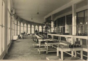 In poco più di vent’anni l’attività della distilleria crebbe notevolmente, tanto che nel 1938 fu necessario ideare un piano di ampliamento della fabbrica. Fu l’architetto Michelucci a elaborare il progetto, poi realizzato dall’ingegner Zeni. Punto nodale dell’intero programma fu la scelta di mantenere intatto il vecchio edificio Kursaal e farne il cardine della nuova architettura, sottolineando il legame con la tradizione: bisogna comunque specificare che l’idea originale di Michelucci era di creare unità stilistica dell’intero edificio, prevedendo dunque un intervento che avrebbe dovuto alterare in parte le forme della struttura preesistente, ma ciò non venne eseguito dall’ingegner Zeni che preferì lasciare il Kursaal com’era delineando un nuovo edificio che si integrava perfettamente nell’ambiente precedente, con armonia, senza rinunciare ai canoni del razionalismo. Il progetto principale prevedeva uno sviluppo di due corti di forma circolare che si articolavano attorno alla struttura centrale, seguendo gli ambienti planimetrici e i rapporti formali preesistenti ed estendendosi nella zona retrostante formando un ampio spiazzo circolare dedicato, oggi, proprio all’Architetto che lo ideò e creando un secondo accesso verso il mare di carattere funzionale per la fabbrica, senza alterare gli spazi e la loro percezione. Le corti laterali formavano dunque grandi aree idonee a ospitare la distilleria, senza però rinunciare a quel gusto architettonico di cui Michelucci era forte esponente: un’architettura capace di catturare il suo tempo, di dialogare con la storia e con la Città, e di provvedere ai nuovi bisogni della collettività; una struttura legata alla memoria che rievoca le equilibrate forme di un passato classicismo, rielaborandole nella contemporaneità. Questa visione architettonica rientra nel principio, caro a Michelucci, dell’umanizzazione dell’architettura per il quale grande importanza viene data all’utilizzo libero e creativo degli spazi che si traduce in una concezione dell’edificio che pone al centro l’uomo e il suo vivere, non la ricerca formale. Sulla base di questo concetto la fabbrica non fu intesa solo come area per la produzione, ma come luogo del lavoro collettivo, come un edificio pubblico.