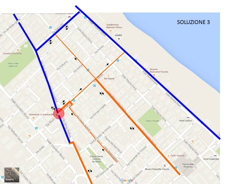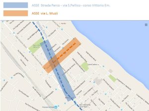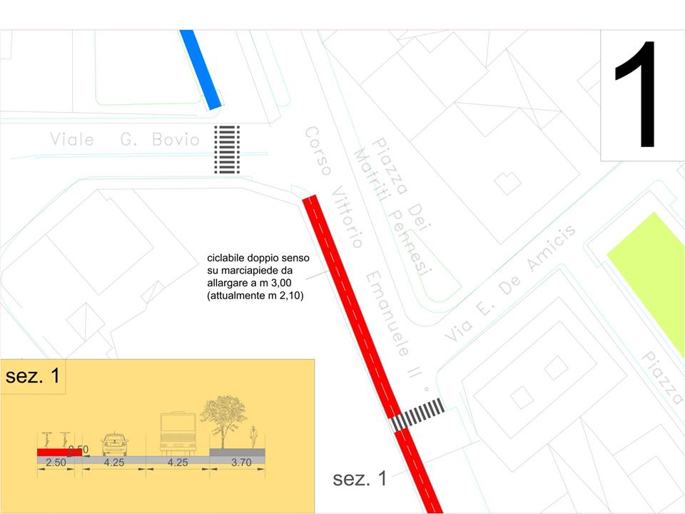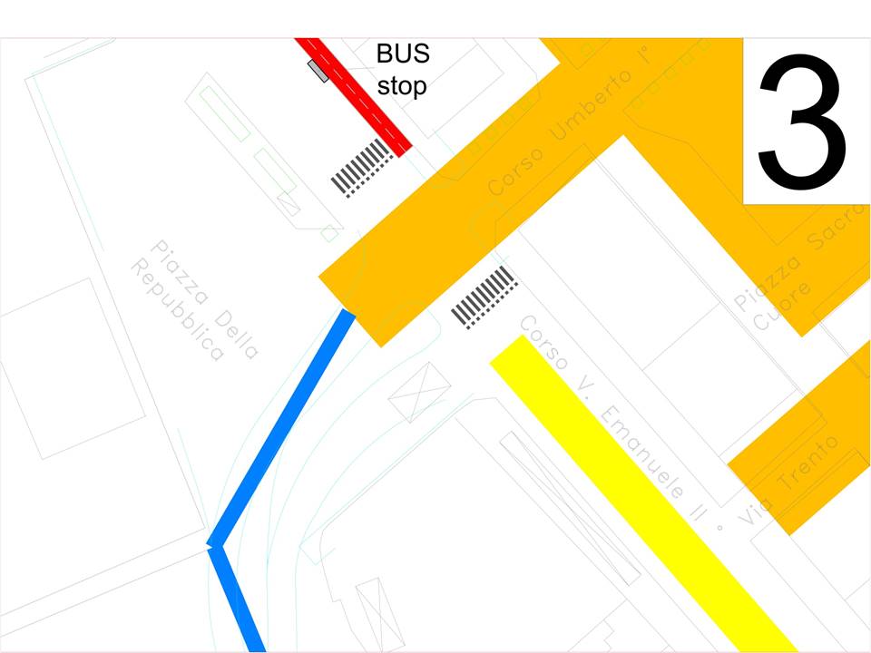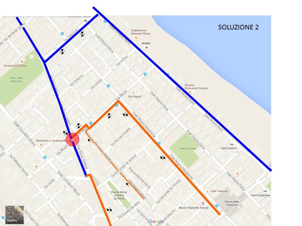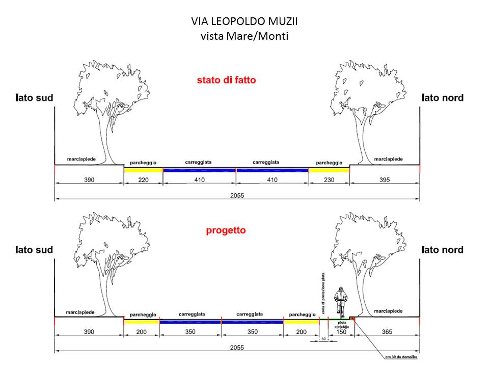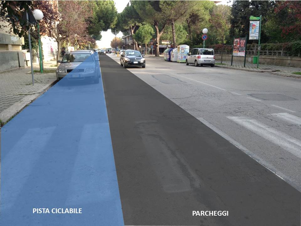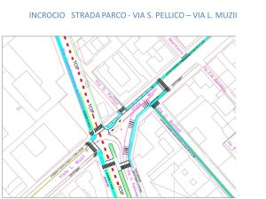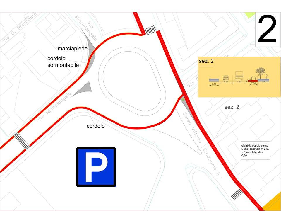 - Corsia bidirezionale lato sud con eliminazione parcheggi