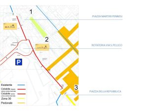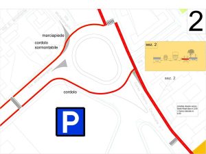 - Corsia bidirezionale lato sud con eliminazione parziale parcheggi