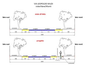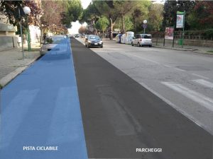 - Via Muzii – Scenario pista ciclabile monodirezionale con parcheggio in opposizione