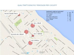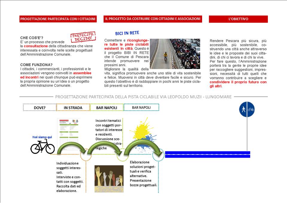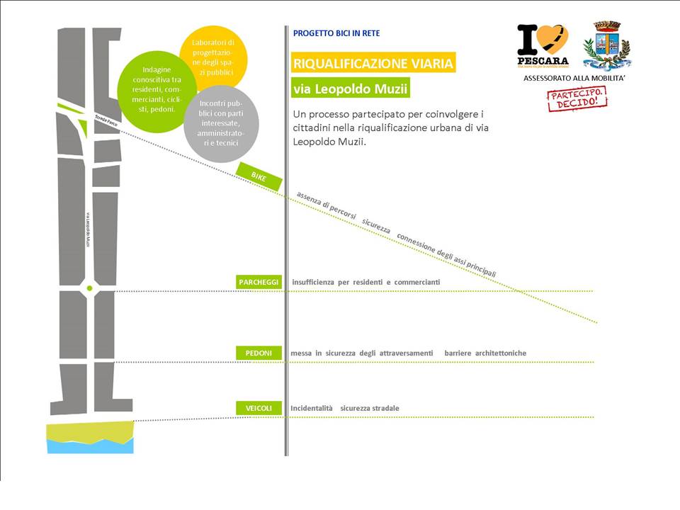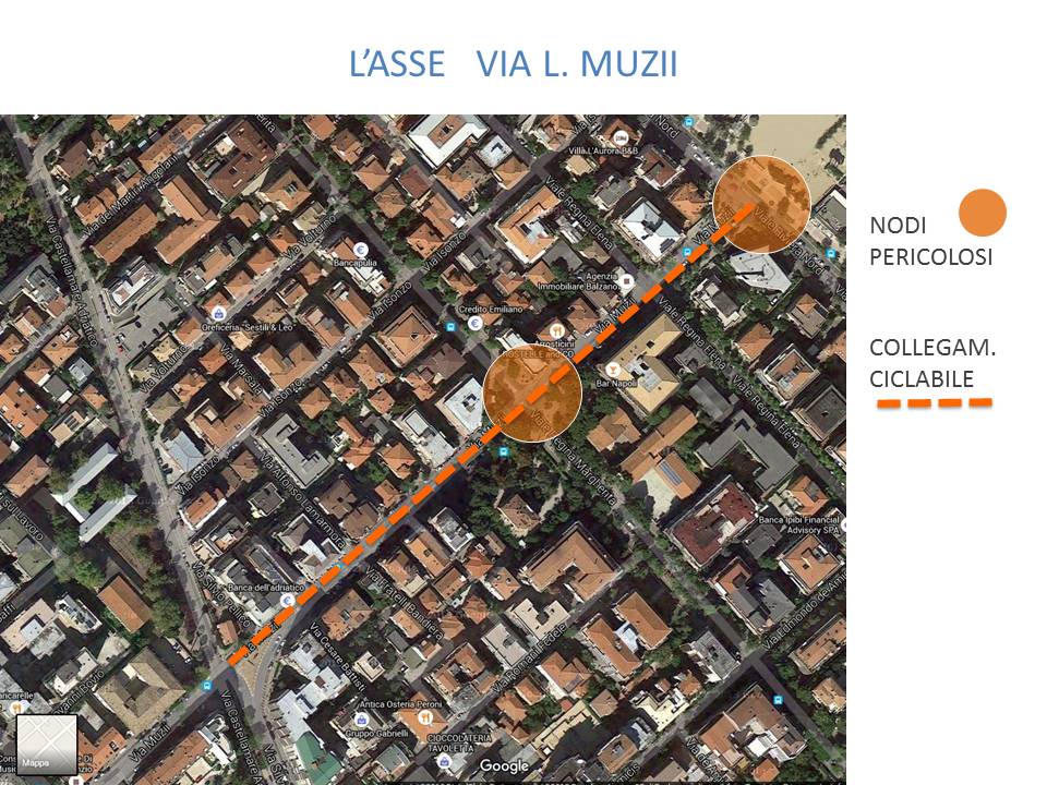 Le slide di cui alla galleria che segue sono quelle proiettate durante l’incontro svoltosi lunedì 14 dicembre alle 21,00 presso il Bar Napoli, per illustrare le bozze progettuali relative agli interventi di tutela delle utenze deboli, in particolare ciclisti, lungo le tratte Via Muzii, Via S. Pellico e dintorni. Ogni slide ha un commento interno e relativa didascalia.