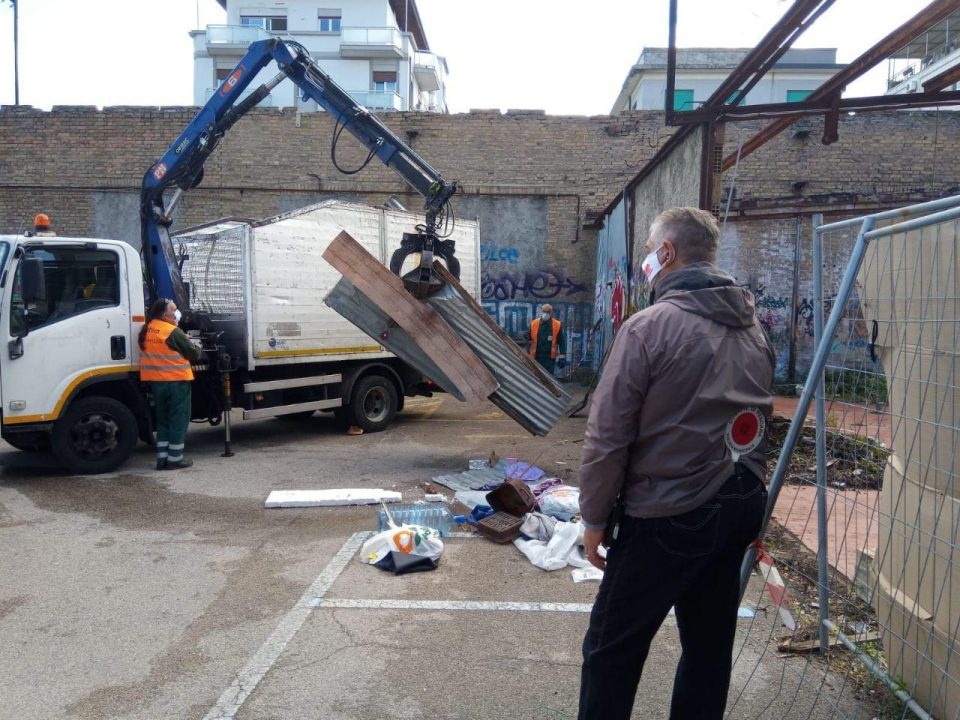 Prosegue l’azione dell’amministrazione comunale per il ripristino della legalità e per la lotta al degrado in aree e punti della città in cui insistono situazioni cosiddette “sensibili”. Questa mattina gli agenti della Polizia Municipale di buon’ora hanno infatti proceduto a liberare la struttura dell’ex Fea (così si definivano le Ferrovie Elettriche Abruzzesi), sul lungomare Nord di Pescara, dalla presenza di individui senza fissa dimora che la occupavano abusivamente. Gli uomini del comandante Danilo Palestini hanno raccolto le continue lamentale dei residenti e dei frequentatori della riviera che, allarmati da una situazione oggettivamente a rischio sia sotto il profilo sanitario che della sicurezza, a più riprese nel corso dei mesi avevano denunciato loschi movimenti, con ogni evidenza legati al mondo dello spaccio e della prostituzione.